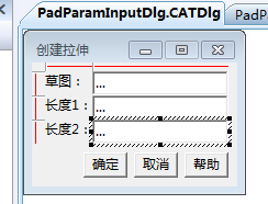 在名为CAAPadCreateCmd的Module中创建一个名为PadParamInputDlg的对话框,安装如下方式布局并在对话框中添加对应的控件: